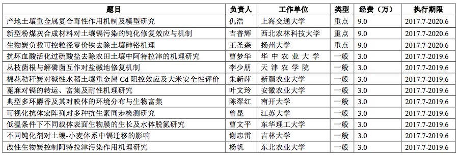 农业部产地环境污染防控重点实验室/天津市农业环境与农产品安全重点实验室开放基金2017年度拟资助项目公示通知
