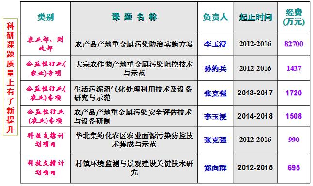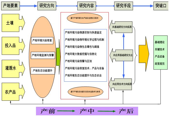以产地环境中典型重金属、农药和有机物污染、农膜等为研究目标,突出产前、产中和产后的全过程污染防控,重点开展产地环境污染防控的基础理论研究、产品和装备研发、技术集成与推广、政策决策服务: