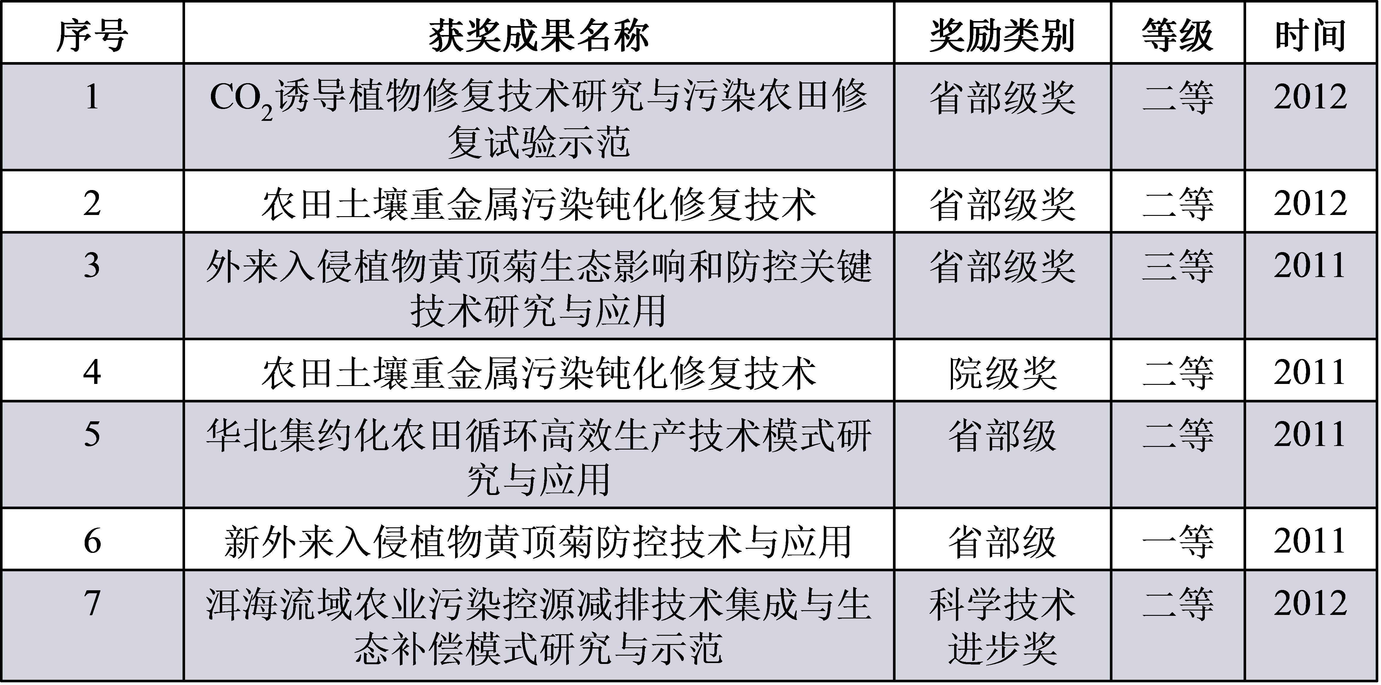 2011-2015年,实验室共获得省部级科技进步奖17项,其中一等奖1项二等奖8项、三等奖6项、农业技术推广合作奖。